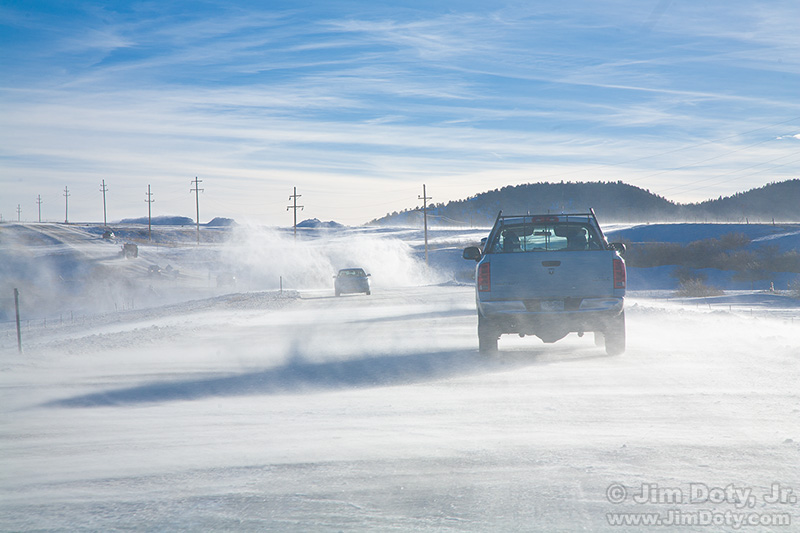 Today was mostly a travel day with not much time for photos. This is my favorite photo of the day. I was heading south on U.S. 285. In South Park (a large valley surrounded by mountains) it was was snow and ice covered, and a bit slippery. A ground blizzard was going on. At times there was so much snow blowing across the highway that was hard to see anything. Everyone was being careful. Progress was slower than I had planned.