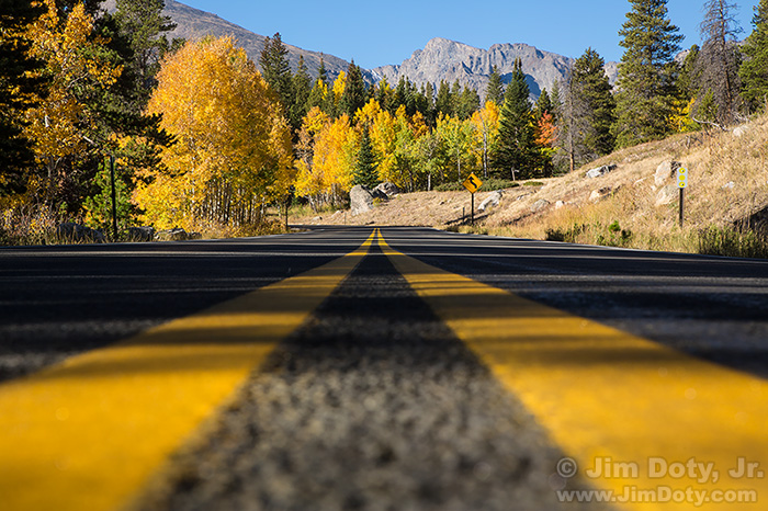 My fall in Colorado series. If this photo looks familiar, this is the same stretch of road as yesterday’s lead photo. I came back the next day and put my camera right on the road for a different look.
