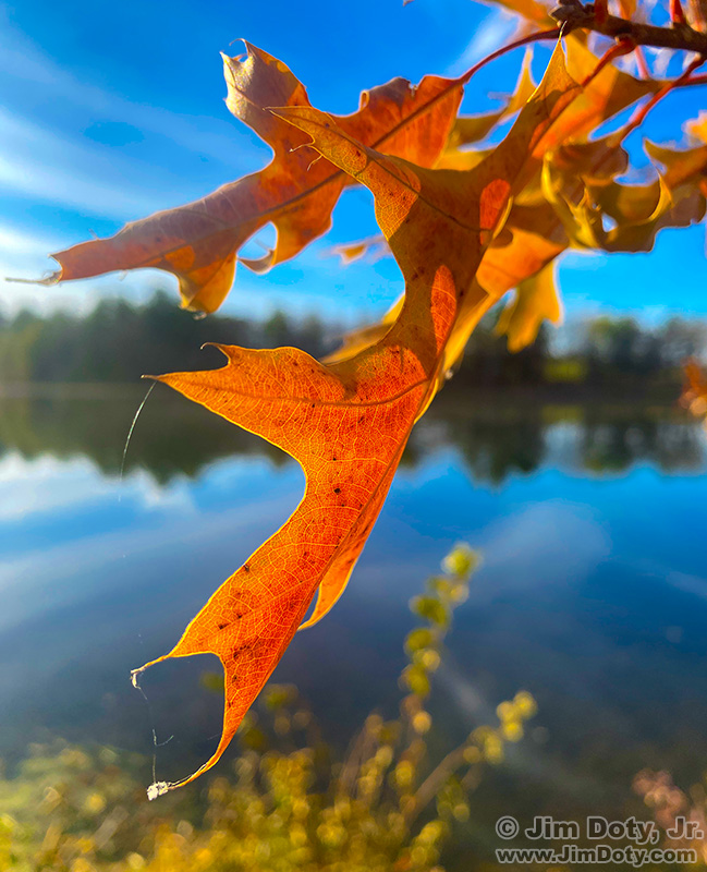 A lot has changed over the last two days. The fall colors are fading fast in southern Iowa. The prettiest trees are starting to lose their color. A lot of trees are bare and lots of leaves are turning brown. I am still finding patches of color and a few trees that are hanging in there with some nice color. Like yesterday, two of those trees were at Lake LaShane.