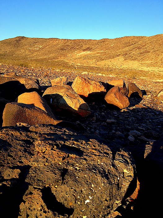 When we go to Fort Irwin, it is my custom to get up early each morning, head out into the Mojave Desert, and take pictures. I wanted to capture some of the volcanic rocks around Mount Blackie and still provide a sense of place. I created this image with my iPhone. This is my favorite photo for this date.