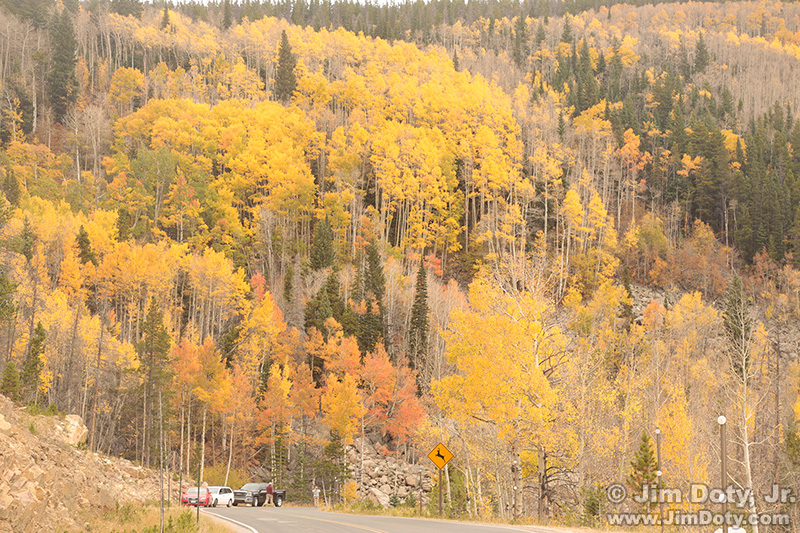 This beautiful aspen covered mountainside is right above “Fern Curve” where the cars are parked. You won’t find this marked on the park maps, but you can find the location in this article which features a photo taken late in the evening.