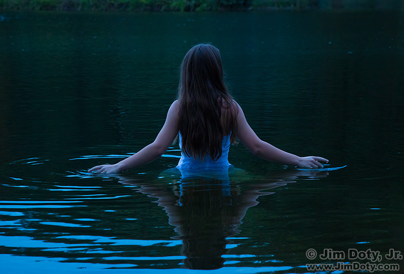 There was a promising mixture of sunlight with a smattering of clouds to the west, which could turn into a real nice golden backdrop for lake portraits. To the east there was a dense cloud cover with dark blue light underneath. It was heading our way. We decided to go for it. But by the time we arrived at the lake the dark blue cloud bank had taken over. The sun and hopes of golden light were gone. We were left with dark clouds and a sea of blue light. Blue or not, we decided to shoot anyway. Besides, the blue light had charms of its own.