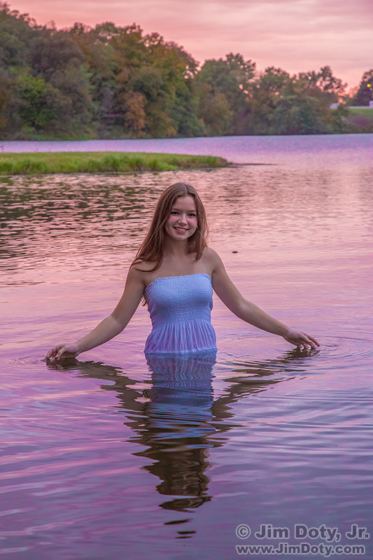 Then the light began to change. Some pinkish colors began to appear in the west. Somehow a bit of light from the sun was getting through the clouds. We changed shooting directions so the growing pink light would be behind Ava. This light turned out to be quite nice too.