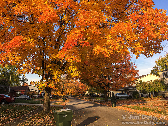 Ohio, November 2 Posted on November 2, 2025 by Jim Sunny, autumn leaves, Columbus, Ohio. November 2, 2016. I was walking our dog on Sugarmaple Street, which is lined with maple trees and definitely the prettiest street in our neighborhood in the fall. Autumn leaves, Columbus, Ohio. November 2, 2016.