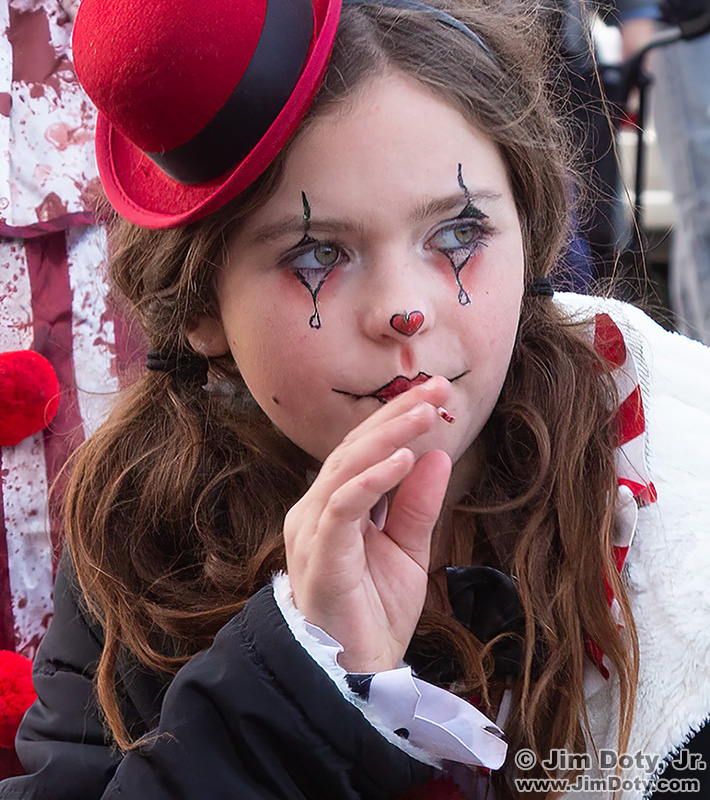 But there is a third image of just the one clown. It is a study of her face and makeup, and no scariness from the clown behind her.