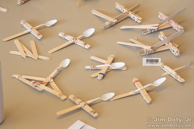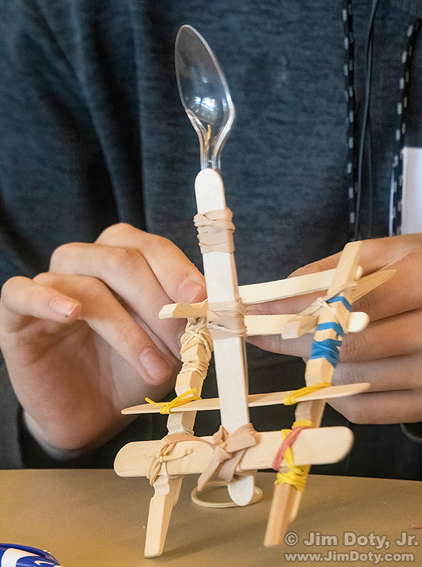 A lot of testing went on. Some launchers could toss a ping-pong ball 20-30 feet, and some only 2-3 feet. The power had to come from the rubber bands. You were not allowed to just throw a ping-pong ball with a spoon.