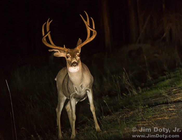 “Deer in the headlights”. Southside Drive near the meadow across the river from Valley View, Yosemite Valley.