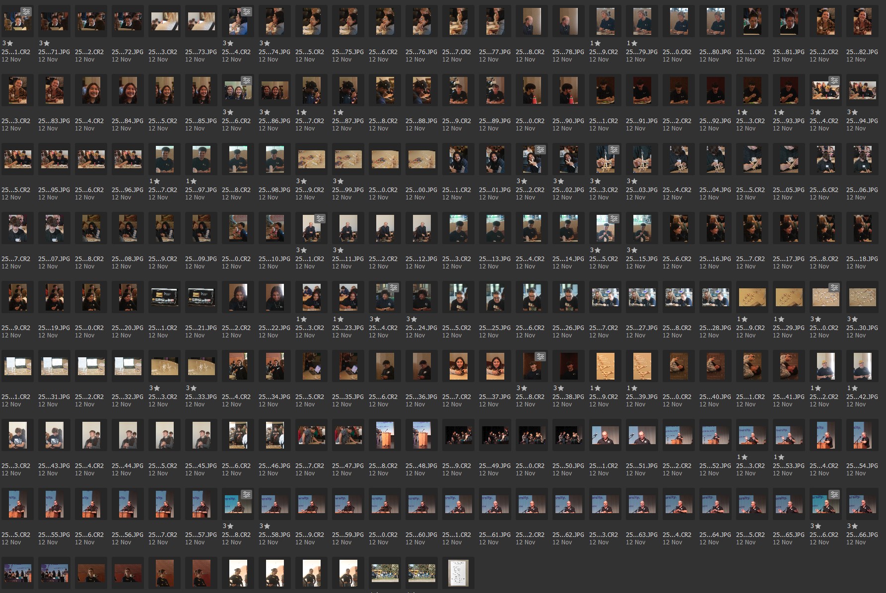 Then I went back and looked at every photo one more time. Some photos with no stars or one star became three star photos. Some photos dropped in their rating. My final group of selects (screen capture above has 30 photos that will go to Graceland University.