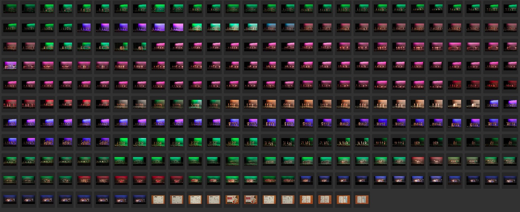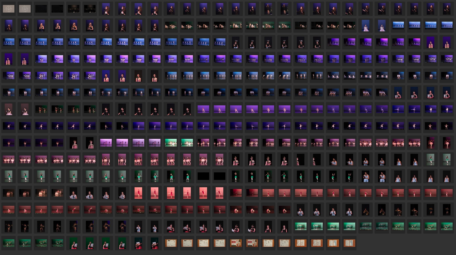 The “Living Art Studios” dance recital was Saturday night. It is one of the biggest events of the year in our little town. Yesterday I sent a small selection of images from the recital to the local newspaper which is published weekly on Thursday. I usually send 6 to 10 images and they usually publish from 3 to 6 and on really slow news week they post even more. Today I am taking one last look at all the dance images for any additional favorites for this event. Here in this screen capture from Adobe Bridge are the first 20 shutter clicks (one RAW and one JPEG image for each click) with one of my cameras.