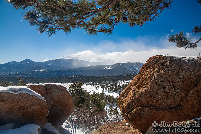 Beaver Meadows Overlook on Dear Mountain has a nice view to the south at Longs Peak which was surrounded by clouds when I created this image. This is one of my two photo locations on the road over Deer Mountain.