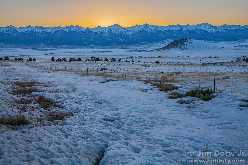 My last landscape photo of the day was in the Wet Mountain Valley. I didn’t quite making it on time to catch the sunlight raking across the snow right before it set. This was my last photo of my 6 day winter photography adventure in Colorado.