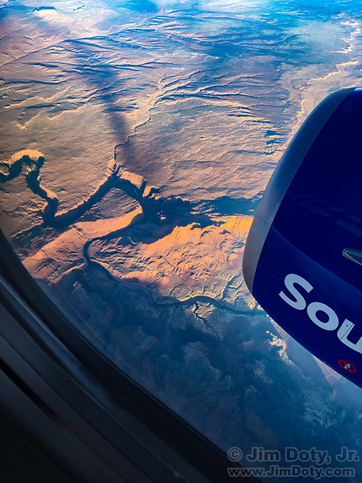 We were flying east our of California and I was watching the landscape go by. I spotted this interesting bend in the channel carved by the Colorado River in Arizona.